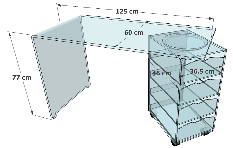 Votre plaque de Plexiglass sur Mesure au Meilleur Prix ! » Bureau transparent 4 tiroirs rotatifs en Plexiglass