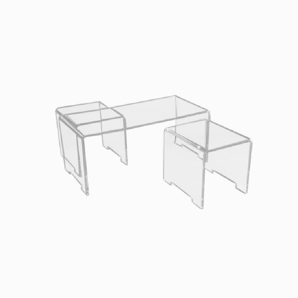 495,72 € TTCTable basse gigogne en Plexiglass transparent 3 surfaces. De la surface la plus grande à la plus petite, le meuble est d’une hauteur de 40 cm, 30 cm et 21 cm, d’une longueur de 79 cm, 71 cm et 62 cm pour une largeur commune de 40 cm.