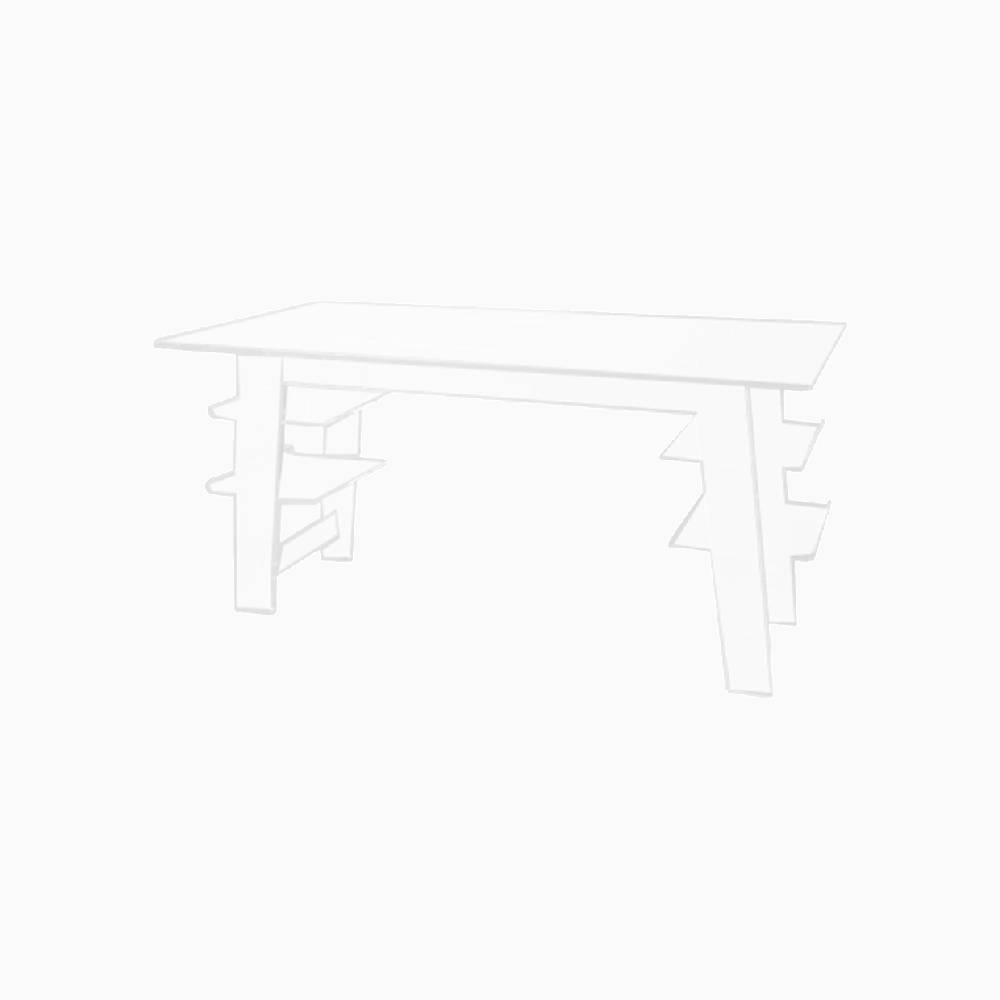 Grand bureau rectangulaire en Plexiglass transparent, d’une hauteur de 75 cm, d’une longueur de 150 cm et d’une largeur de 75 cm.