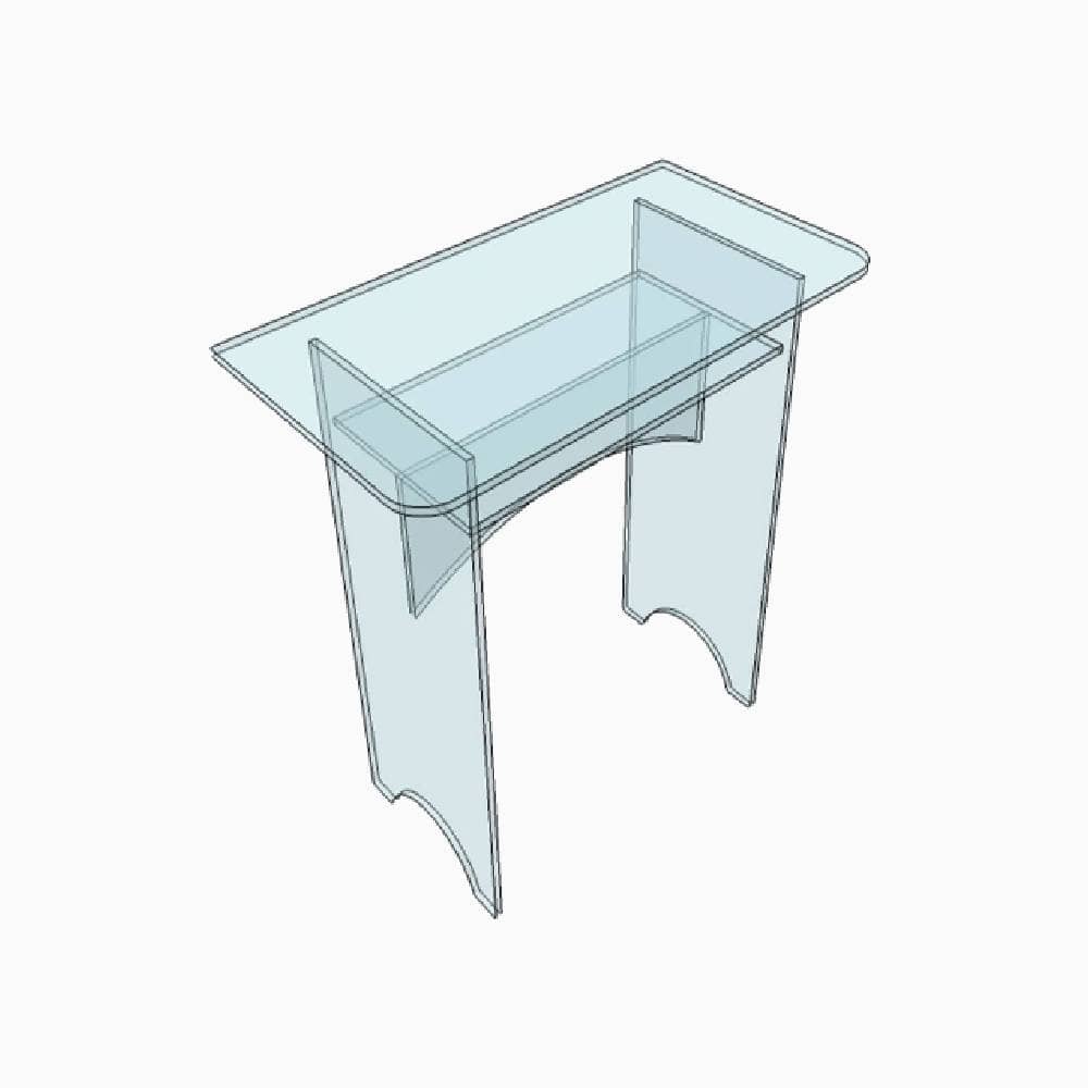 Petit bureau en Plexiglass transparent d’une longueur de 75 cm, largeur de 40 cm et d’une hauteur de 73 cm pour une épaisseur 10 mm.