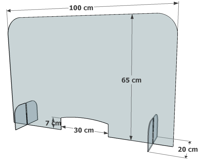 Grande protection en plexiglass transparent pour accueils et comptoirs, d’une hauteur de 65 cm, d’une longueur de 100 cm, cette protection transparente est parfaitement conçue pour stopper les projections et les postillons pour protéger les individus. Elle se montre particulièrement utile en période épidémique en établissement recevant du public. Sa grande transparence la rend très discrète et ne gêne en aucun cas la communication entre collaborateurs et visiteurs. Chacun d’entre eux peut parfaitement se regarder dans les yeux, échanger des informations et des documents (présence d’une ouverture passe document). Simple mais efficace, cette protection est composée d’un plexiglass de qualité qui ne jaunit pas, solide et durable dans le temps. Mise en place immédiate et sans aucun perçage. La protection est simplement maintenue par deux pieds amovibles de 20 cm de large.