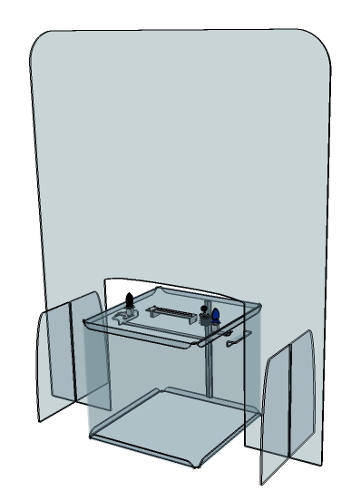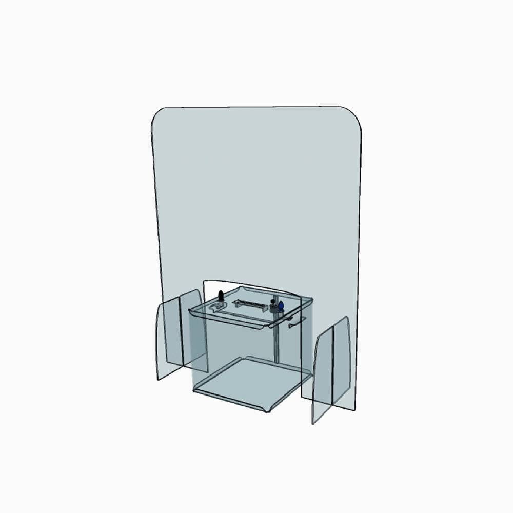 Protection d’urne pour bureau de vote en plexiglass transparent, d’une hauteur de 120 cm, d’une longueur de 100 cm, soutenu par 2 pieds d’une profondeur de 34 cm. Urne vendue séparément