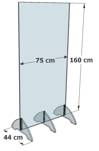 Support d’affichage en plexiglass transparent. Cet article d’une hauteur totale de 160 cm est composé de 3 éléments : 1 plaque de Plexiglass de 30 cm de largeur ou 75 cm (2 versions disponibles), une hauteur de 150 cm, pour 1 cm d’épaisseur.