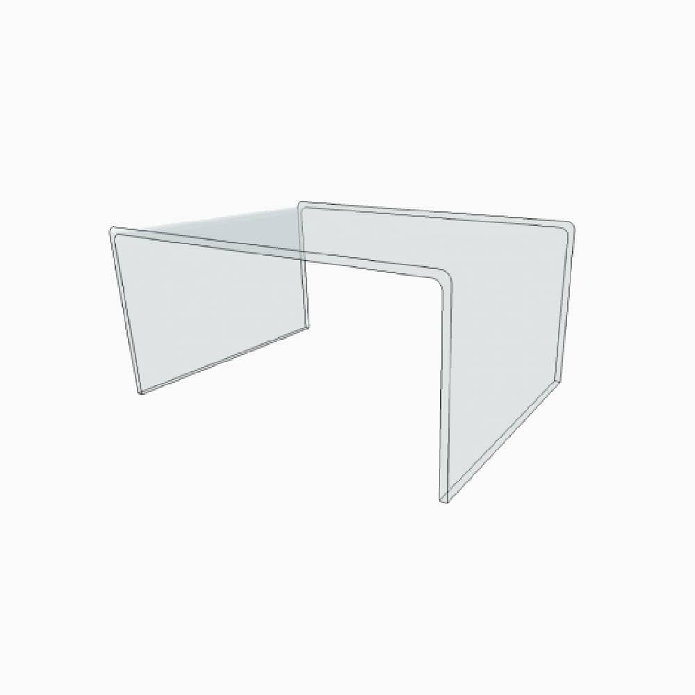 Petite table basse en pont en Plexiglass transparent d’une hauteur de 40 cm pour une longueur de 100 cm et une largeur de 70 cm.