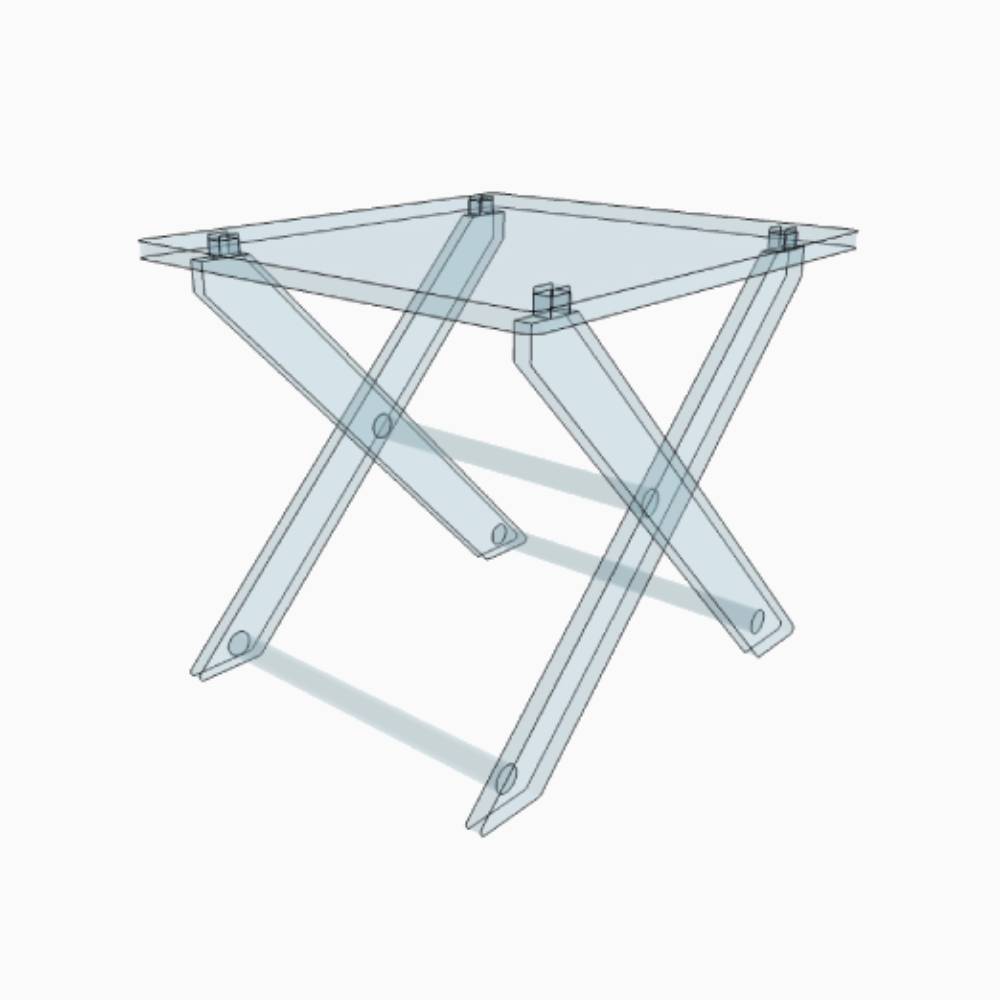 Petite table carrée pliante en Plexiglass transparent d’une hauteur de 41 cm, d’une longueur de 44 cm et d’une largeur de 47 cm.