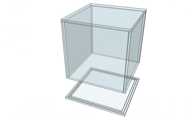 Vitrine cubique transparente en plexiglass. Ce modèle est proposé en 3 formats : 30x30x30, 40x40x40, et 50x50x5