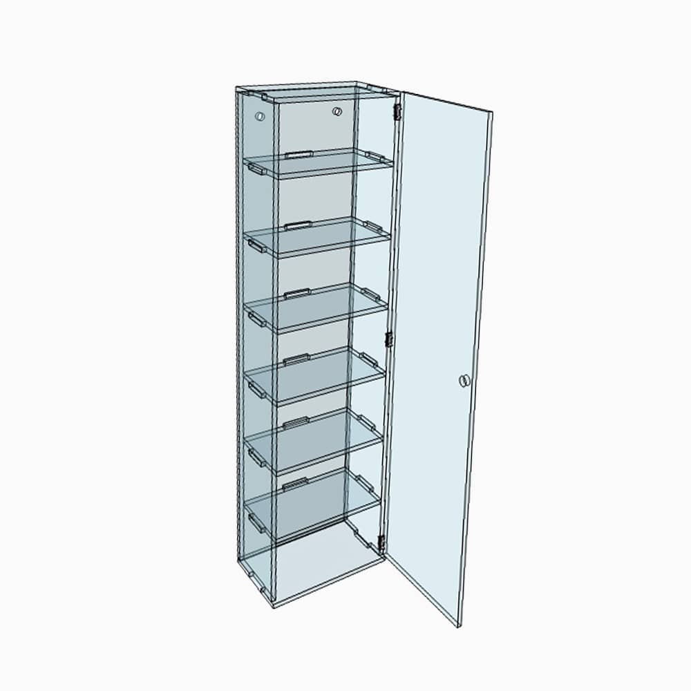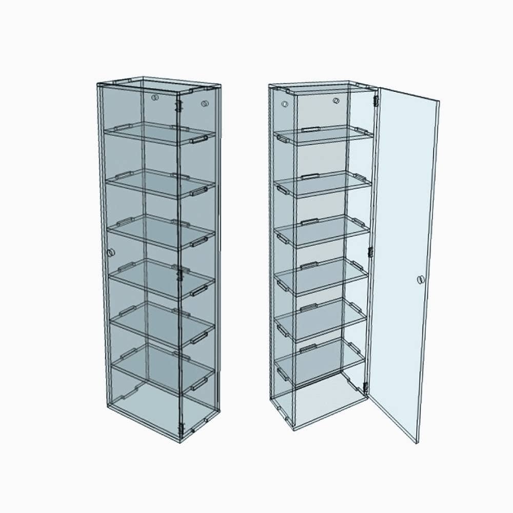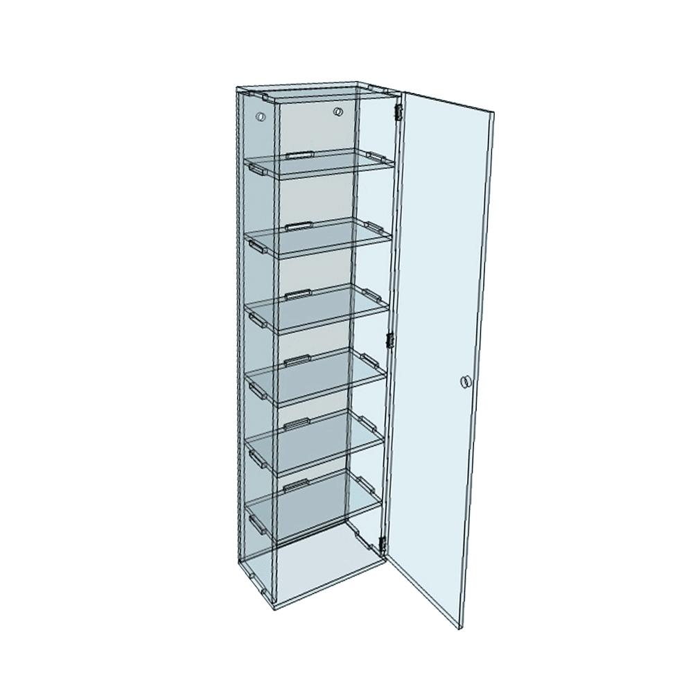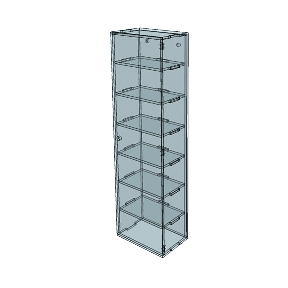 Vitrine murale transparente en plexiglass pour collectionneur. D’une hauteur de 104 cm, d’une longueur de 28 cm et d’une largeur de 18 cm, cette vitrine est idéale pour exposer vos collections de toutes sortes. Grâce à son format compact, ce meuble s’installe aisément partout et y compris dans les espaces les plus étroits. Sa grande transparence vous permet de mettre en valeur son contenu et ce sans gêner la visibilité de son contenu. Rangez-y tout objet de votre convenance grâce à 6 tablettes emboîtables. Cette vitrine murale est composée d’un plexiglass de qualité qui ne jaunit pas, solide et durable dans le temps. Le plexiglass ou polycarbonate est largement reconnu pour sa solidité et pour sa grande transparence. Contrairement au verre, il est bien plus difficile de l’endommager. Ne craignez donc pas les petits accidents du quotidien comme un ballon ou tout autre jeu de votre enfant. Cette vitrine est robuste et protège efficacement votre collection. Cette vitrine se fixe solidement au mur par ses 2 trous de fixation.